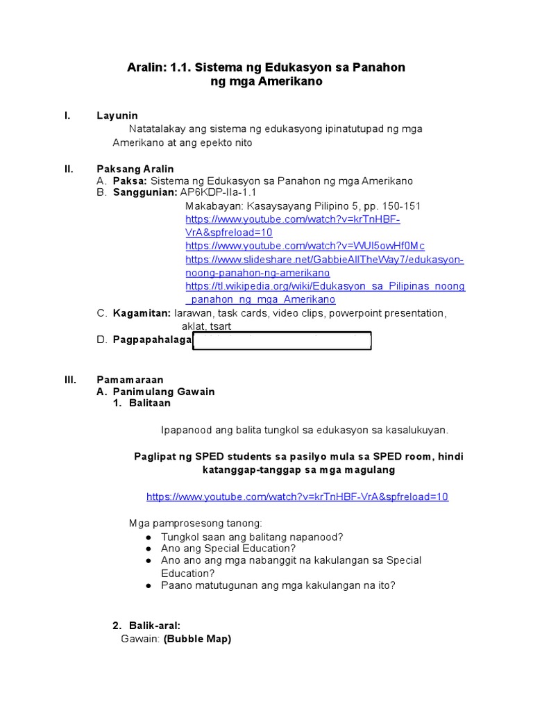 Ap6kdp Iia 1 1 Docx Aralin 1 1 Sistema Ng Edukasyon Sa Panahon Ng Mga Amerikano I Layunin Natatalakay Ang Sistema Ng Edukasyong Ipinatutupad Ng Mga Course Hero