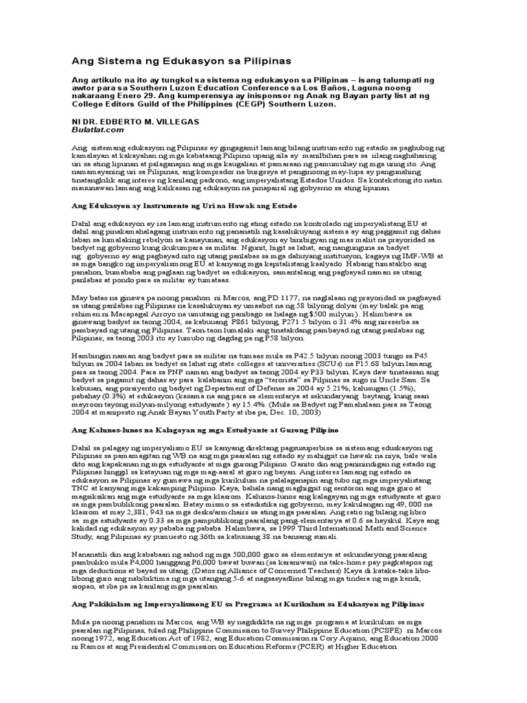 Pdf Makabayang Pagsusuri Sa Kasalukuyang Kurikulum Ng Sistema Ng Edukasyon Sa Pilipinas