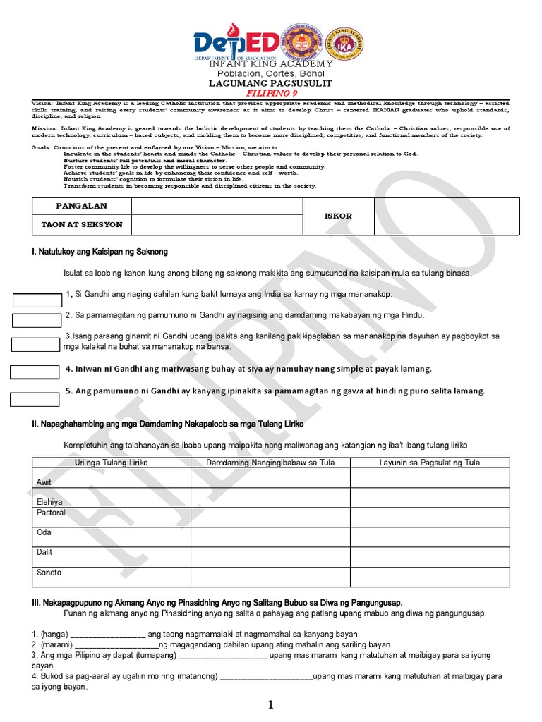 Mapa rock man o love song pareho itong nagiging malaking bahagi ng ating pagkatao lalo na kung sariling wikang Filipino ang gamit nito - Anonymous Anim na letra tatlong pantig isang salita may tono at kinakanta may kumpas at liriko walang iba kundi Musika. Marami_____ ng magagandang dahilan upang ating mahalin ang sariling bayan. Ang mga Pilipino ay dapat tumapang_____.