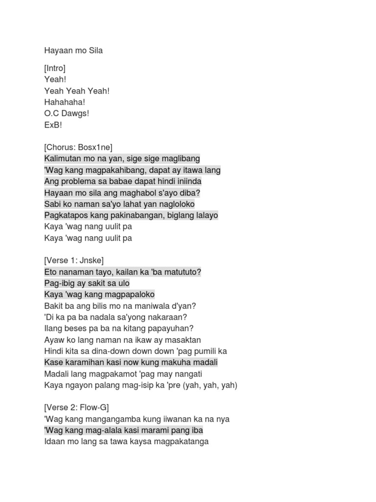 KalimGutan mo na lang ang nakalipDas KuDng nasilaw siyaG napasama sa ibat napaibDang landas chGbBbch Bm chGbBbch Bm Marami pang malalapitan mababait at di pihikan At tatanGda kang bigla pag tumDulo ang luha HaAhaba ang mukha at ikaw. Duyan at marami pang iba DasmariƱas Philippines. Intro E F Ab A Verse E Hwag mong isipin yon F Hindi ka non mahal Ab A Hwag yang katangahan mo ang pinapairal Bridge F Alam mo nang niloloko ka nya C Pero nagbubulag-bulagan ka F Hindi mo ba napapansin Bm Nakekengkoy ka na same chords on 1st verse Hwag manghinayang don may mas babagay pa Igala-gala mo lang ang mga mata same chords At kung sa pag-ihip nitong hangin.