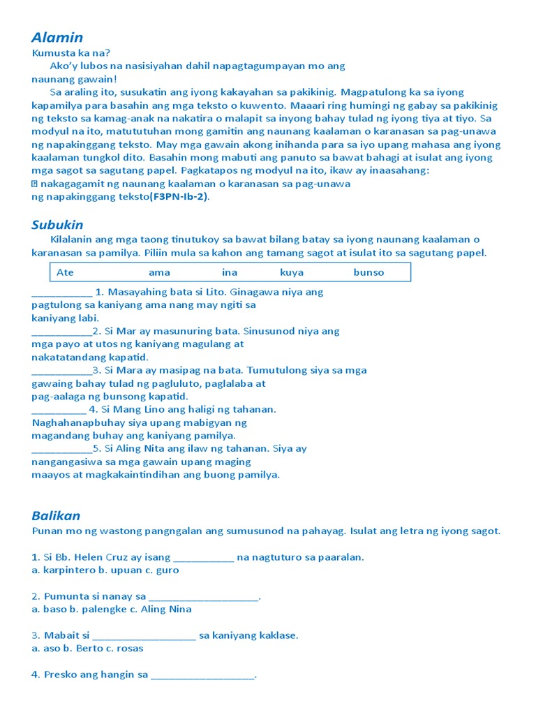 Filipino 5 3rd Grading Module Final 2016